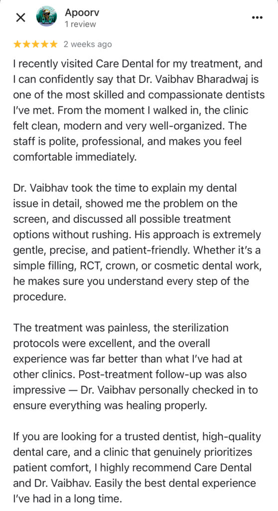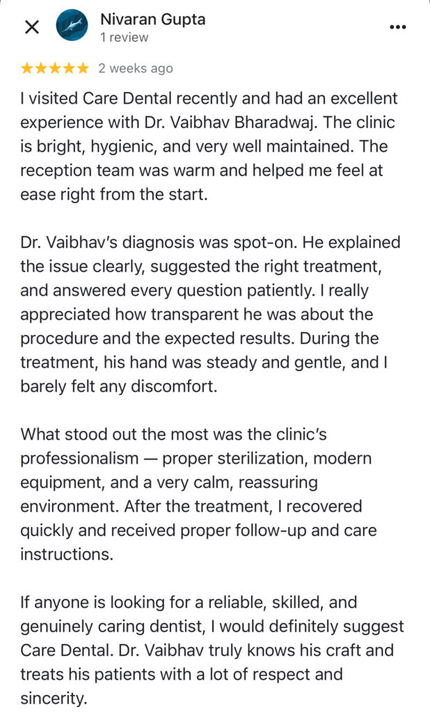 Dr Vaibhav Bharadwaj is a reputed Prosthodontist and a Dental Implant Expert in Jaipur. He’s been practising implantology since 2014 and is a patient-centric practitioner. Tap the button below to book your dental implant consultation with Dr Vaibhav.